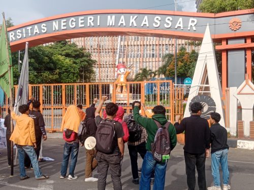 Makassar, Estetika – Badan Eksekutif Mahasiswa (BEM) Universitas Negeri Makassar (UNM) menggelar Aksi Internal di Depan Menara Pinisi UNM, Rabu (8/4) lalu.