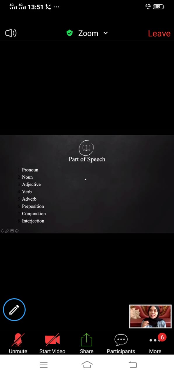 “Menurut saya kegiatan tadi dapat membantu saya memahami apa part of speech itu walau pun secara daring saya dapat menangkap poin-poin pentingnya,” ungkapnya.