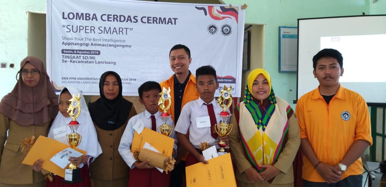 Pinrang, Estetika – Mahasiswa Kuliah Kerja Nyata Pembelajaran Pemberdayaan Masyarakat (KKN-PPM) Universitas Negeri Makassar (UNM) 2019 menggelar babak final Lomba Cerdas Cermat ”Super Smart” di Gedung PKK Lanrisang, Selasa (6/8).