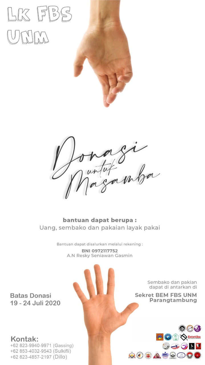 Makassar, Estetika – Lembaga Kemahasiswaan (LK) Fakultas Bahasa dan Sastra (FBS) Universitas Negeri Makassar (UNM) mengadakan Open Donasi untuk Masamba, Senin (20/7).