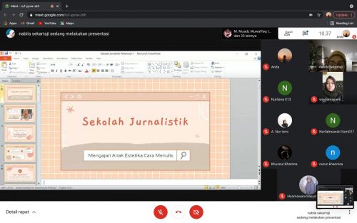 Makassar, Estetika – Lembaga Pers Mahasiswa (LPM) Estetika Fakultas Bahasa dan Sastra (FBS) Universitas Negeri Makassar (UNM) mengadakan Sekolah Jurnalistik via Google Meet, Sabtu (1/5).