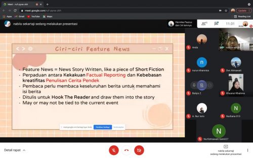 Makassar, Estetika – Lembaga Pers Mahasiswa (LPM) Estetika Fakultas Bahasa dan Sastra (FBS) Universitas Negeri Makassar (UNM) mengadakan Sekolah Jurnalistik via Google Meet, Sabtu (1/5).