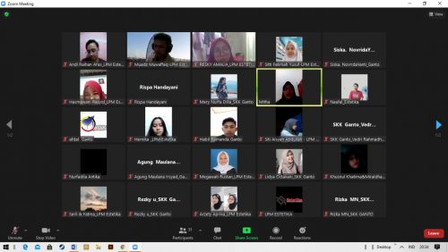 Makassar, Estetika – Lembaga Pers Mahasiswa (LPM) Estetika Fakultas Bahasa dan Sastra (FBS) Universitas Negeri Makassar (UNM) mengadakan Kunjungan Lembaga ke LPM Surat Kabar Kampus (SKK) Ganto Universitas Negeri Padang (UNP) via Zoom, Sabtu (30/10).