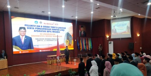 Makassar, Estetika – Rektor Universitas Negeri Makassar (UNM) resmi melantik sebanyak 41 Pejabat UNM di Ballroom Theater Menara Pinisi UNM, Jumat (22/12).