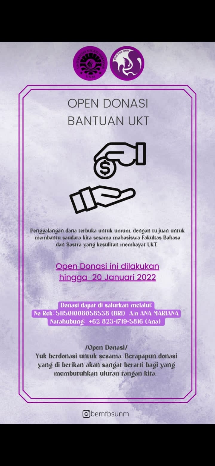 RINGANKAN KESULITAN MAHASISWA, BEM FBS UNM ADAKAN OPEN DONASI BANTUAN UKT