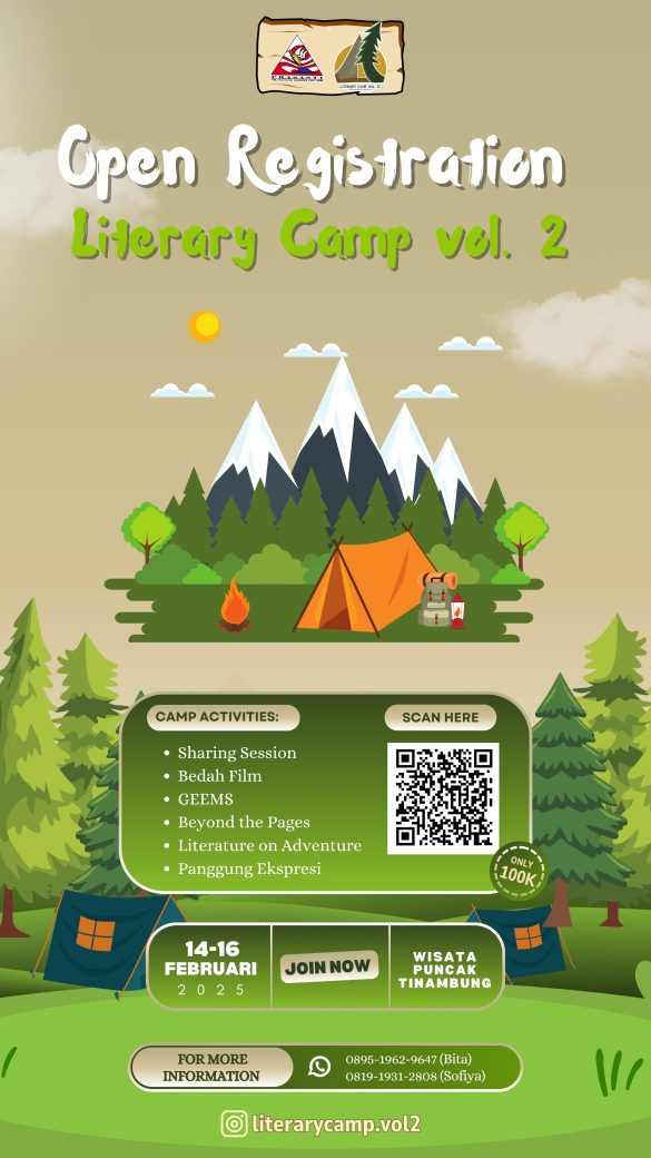 Makassar, Estetika – PRASASTI Himpunan Mahasiswa Program Studi (HMJ) Bahasa Inggris Fakultas Bahasa dan Sastra (FBS) Universitas Negeri Makassar (UNM) membuka pendaftaran Literary Camping (Litcamp) 2025, Selasa hingga Jumat (14-31/1). Litcamp merupakan kegiatan yang bertujuan untuk mempererat tali persaudaraan di antara Mahasiswa Sastra Inggris, khususnya…